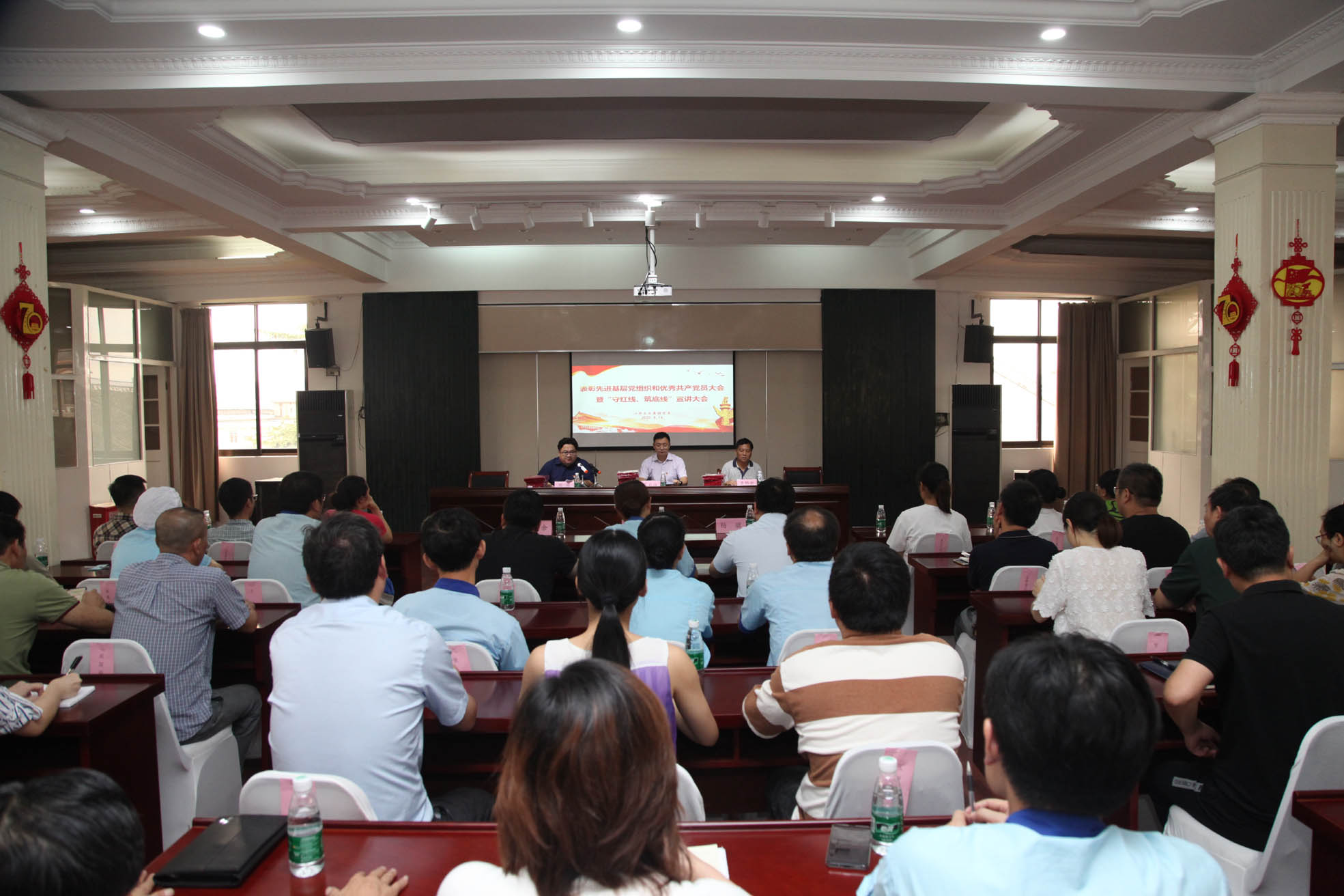 8月14日下午,集团党委在多功能会议室召开表彰先进基层党组织和优秀共产党员大会暨“守红线、筑底线”宣讲大会,对2019年以来涌现的先进基层党组织和优秀共产党员进行表彰,同时,结合上级最新要求和企业党建廉建及经营发展实际,集团党委副书记、工会主席张启祥,纪委书记、监察专员朱锡余,党委委员、副总经理杨骥作专题宣讲。