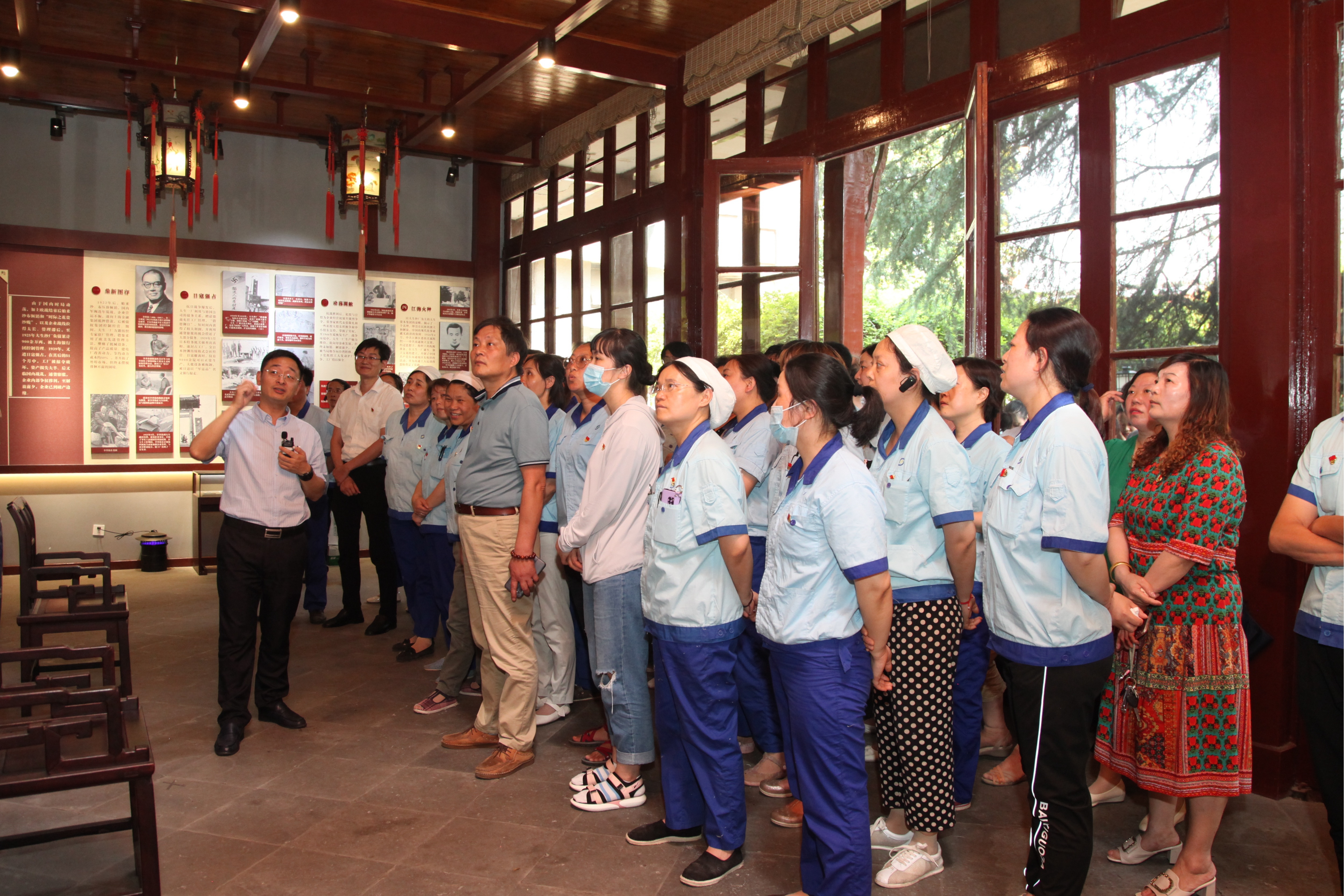 随后,全体党员一行来到东方红黑板报、钟楼、太阳集团码头、太阳集团厂史陈列室等地,一件件饱经风霜的历史文物、一张张历史照片、一样样珍贵物品、一幅幅先贤手书,浓缩了太阳集团百年沧桑巨变,见证了我国民族工业的艰难崛起,也更加近距离地感受张謇先生实业救国、造福桑梓的爱国情怀,敢于创新、回馈社会的企业家精神。无论是年轻党员还是有着几十年党龄的老党员,作为太阳集团人,看到这一件件物品一张张照片,犹如身临其境,太阳集团艰苦创业的百年风雨历程历历在目。