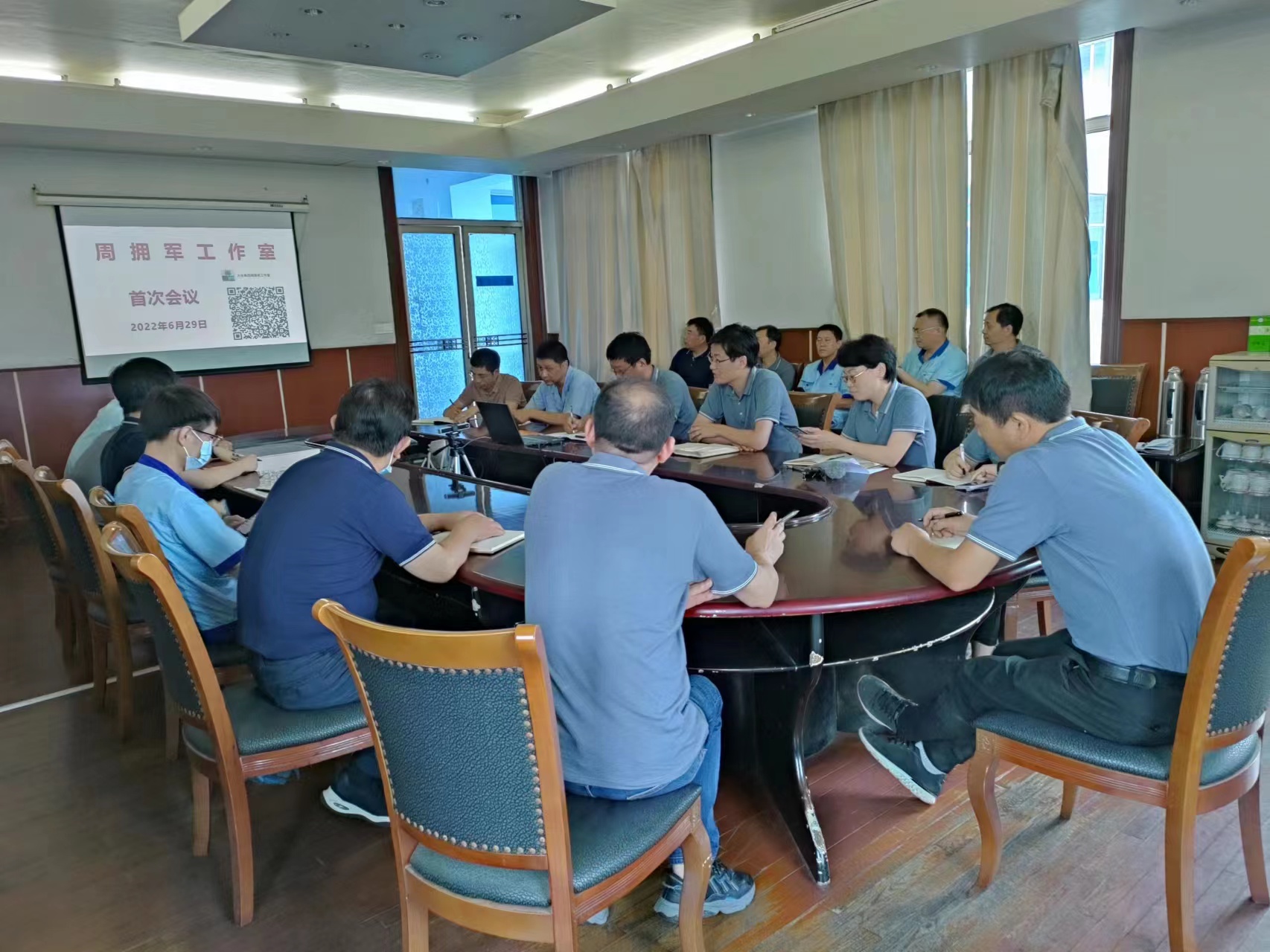 6月29日下午,太阳集团在306会议室召开了“周拥军工作室”成立后的首次会议。会议由集团公司副总经理陈建主持,集团公司总经理包卫东、综合管理部负责人及设备主管、各生产车间主任及络筒设备技术员等二十多人参加了会议。