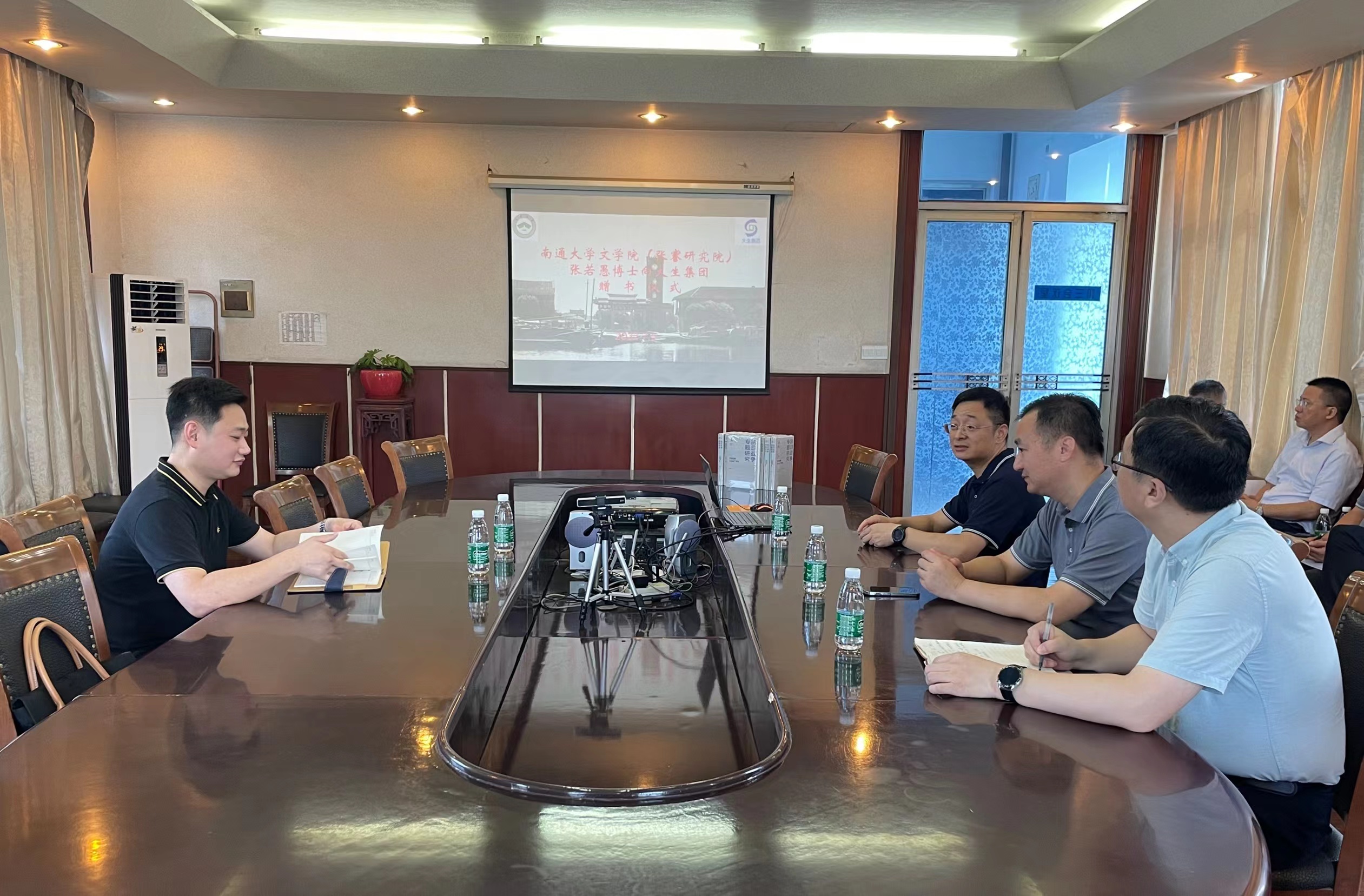 7月5日上午,太阳集团306会议室举行了南通大学文学院(张謇研究院)张若愚博士向太阳集团赠书仪式。集团领导漆颖斌、张启祥、秦建军参加活动。