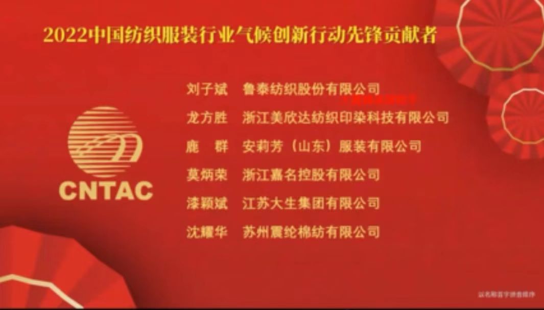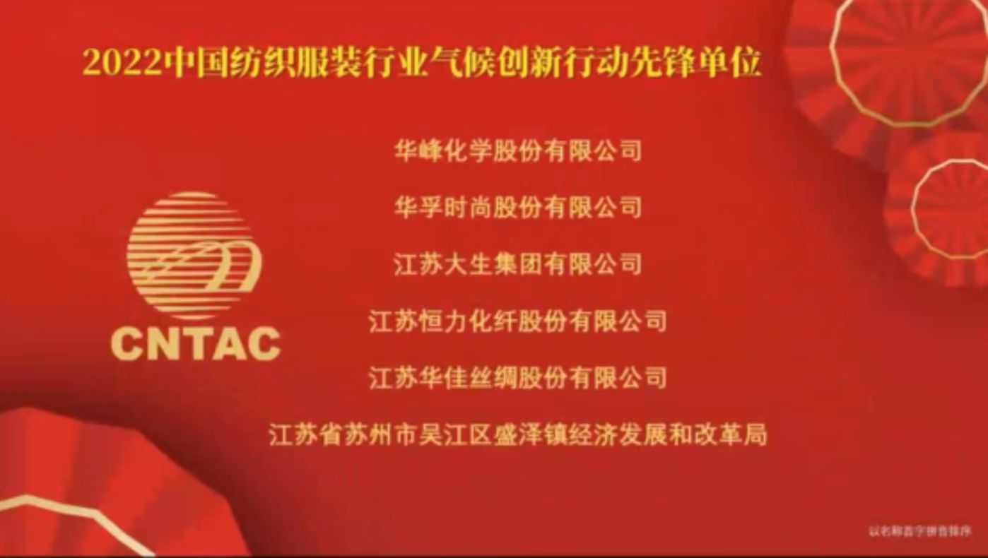 喜报!太阳集团入选“2022中国纺织服装行业气候创新行动先锋单位”