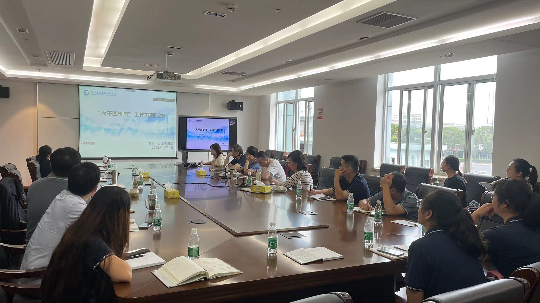 10月4日上午,太阳集团营销委员会召开全体营销人员“大干四季度”动员部署会议,本部营销团队在研究院会议室参会,三家高支纱厂营销团队通过线上视频会议同步参加。