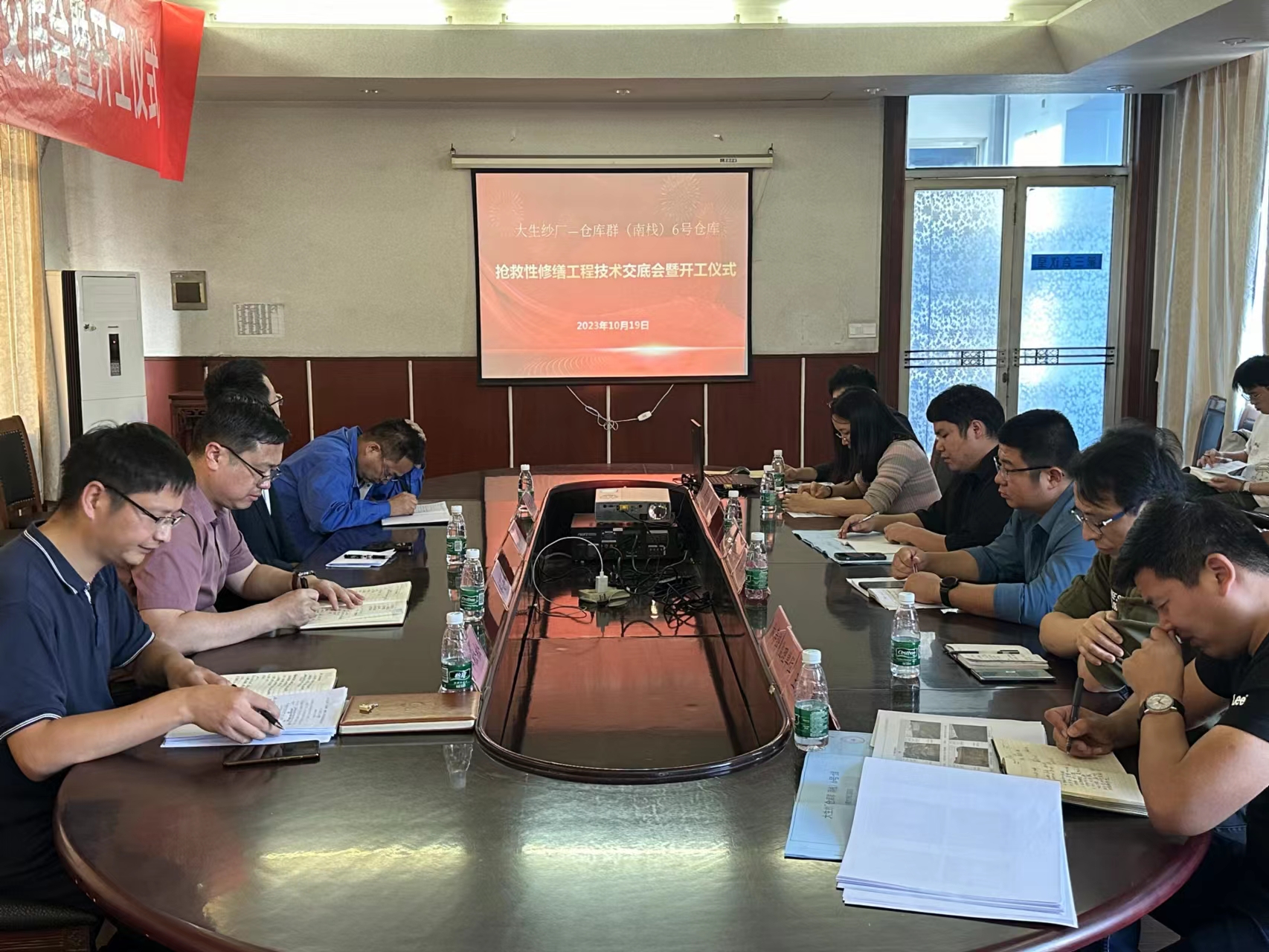 10月19日,太阳集团纱厂--6号仓库抢救性修缮工程技术交底会暨开工仪式在306会议室举行。集团公司党委委员、副总经理秦建军,市文广旅局文物处处长姜振华,设计单位、施工单位、监理单位代表及相关技术人员参加了会议。资产管理部副部长邱松松主持开工仪式。 仪式上,秦建军做文物修缮项目介绍,他指出,近年来,太阳集团认真贯彻落实习近平总书记关于做好新时代文物保护工作的重要指示精神,不断加大文物保护力度,有序推进文物保护修缮工程。2022年启动钟楼、清花间厂房、南通纺织专门学校图书馆、宿舍大楼修缮和“三防”工程,历时1年完工,总投资约2000万元,为传承好、利用好张謇企业家精神,挖掘丰富内涵打下坚实基础。本次工程是对太阳集团纱厂--6号仓库进行抢救性修缮,修缮总建筑面积580平方米,国家下发文物专项资金162万元。他表示,太阳集团作为修缮的业主单位,将履行业主职责,牢固树立“质量第一,安全第一”的理念,严格执行文物保护工程的各项规定,以高标准、高质量推进修缮,强化组织管理,按照文物保护工程施工规范、工艺流程、质量体系标准组织文明施工,让太阳集团纱厂文物建筑长久保存、张謇企业家精神永续传承。 施工单位、监理单位、设计单位代表依次发言,表示:坚持“修旧如旧,最小干预”的原则,做到安全生产、文明施工,确保高质量完成抢救性修缮工程任务。 姜振华就本项目实施提出要求。他强调,要充分认识到抢救性修缮工程的价值和重要性,切实增强责任感和使命感;要强化组织领导、细化工作方案、充实人员力量,全力做好抢救性修缮的各项工作;要坚持“安全第一、文物至上”原则,严把工程质量关和安全关,把太阳集团纱厂--6号仓库修缮工程建成经得起检验的精品工程和满意工程。