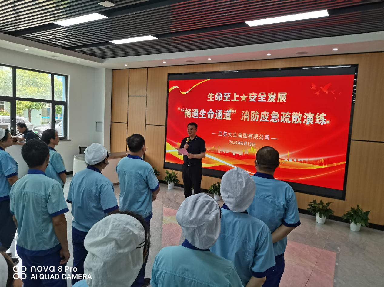活动开始前,漆颖斌做了动员讲话。他指出,消防应急疏散演练是集团公司 2024 年“安全生产月”实施方案中的重要活动内容之一,目的是通过实战模拟演练,强化员工安全意识,提高应急处置能力。希望通过演练活动,普及应急逃生知识,熟悉生命通道标识的含义和识别方法,掌握保持“生命通道”畅通的必要性和法律责任。他强调,安全是企业持续健康发展的基石,是员工个人健康和家庭幸福的保障,要切实把“强化红线意识,实施安全发展战略”内化于心、外化于行,时刻牢记安全无小事,责任大于天。