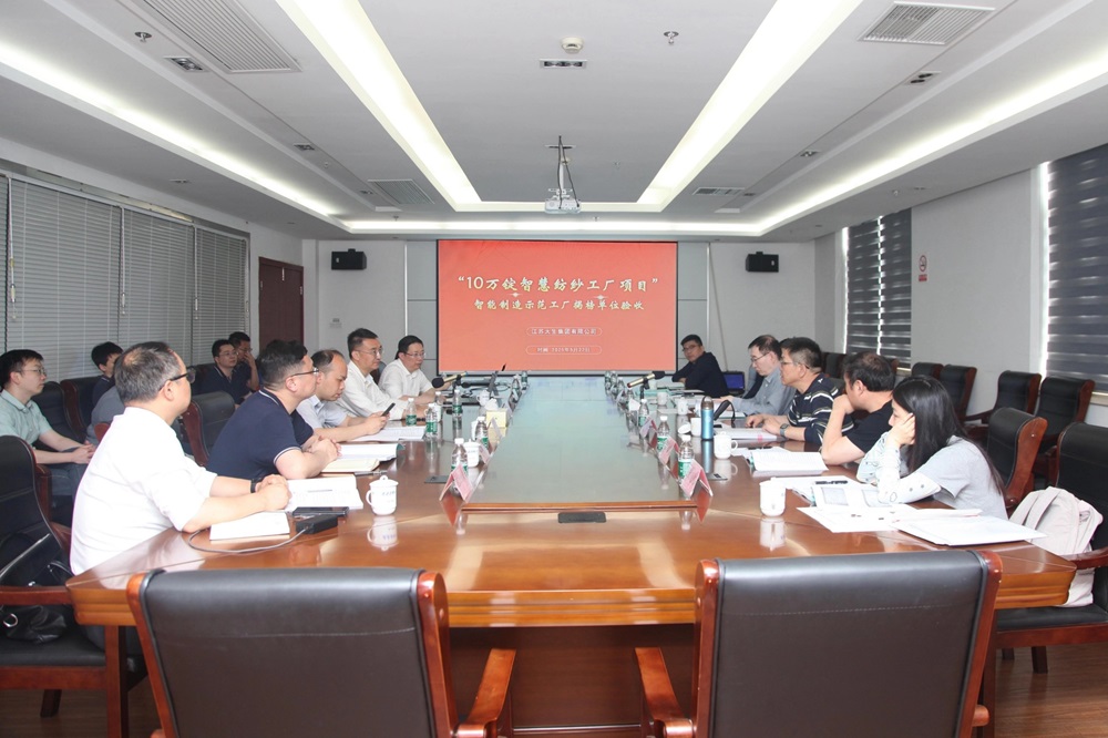 5月22日,江苏省工信厅组织智能制造相关专家一行7人到太阳集团进行国家级智能制造示范工厂揭榜单位验收。 集团公司党委书记、董事长漆颖斌,党委委员、副总经理赵志华、秦建军,市级、区级工信局以及相关部门负责人参加会议。赵志华进行验收汇报。 验收组专家察看了10万锭智慧纺纱工厂建设现场,听取智能在线检测、生产线柔性分配、质量精准追溯等十二个场景的建设情况汇报,以及审查了相关的验收材料。专家组认为太阳集团已经在智能制造方面取得了显著的成效,项目创新成果在国际、国内纺织行业已达到领先水平,多种应用属于行业首创,为传统纺织行业智能制造转型升级探索了新路径,在行业内起到示范引领作用。经评分,验收专家一致认定太阳集团国家级智能制造示范工厂揭榜单位高分通过验收。 10万锭智慧纺纱工厂项目自2023年达产以来,近两年共接待上万专业人员参观学习,为提升棉纺行业的技术、产品、质量水平打下基础,为提升行业的经济效益提供支撑,带动国际、国内纺织工业的持续高质量发展,推动中国纺织品牌的建设。