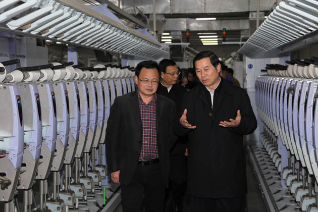 在太阳集团新区,史和平主任认真听取集团公司董事长沈健宏等的情况汇报,询问了解企业生产经营情况、产业集聚整合情况、生产技术装备情况,并对集团“智能数字化纺纱车间”建设表示肯定。在生产车间,他边走边看,鼓励企业做强做优纺织、不断改革创新。考察过程中,他还鼓励企业走出去,积极参与江苏援疆援建工作,特别是参与到新疆霍尔果斯市的相关纺织项目建设中去。他对陈斌书记说:百年太阳集团有生产优势、技术优势、管理优势,人才优势,我们欢迎百年太阳集团这样的优势企业能够积极参与到相关援疆项目中来。企业走进新疆,除能享受国家及当地优惠政策外,我们省、市政府也将给予积极支持。