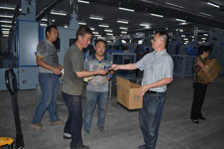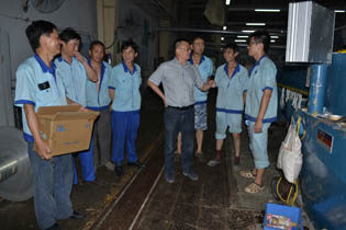 集团公司领导下车间、走车弄,与生产一线员工亲切握手,询问他们的工作情况和身体状况,感谢他们以高昂的工作热情坚守在生产第一线,叮嘱他们注意身体,合理安排作息时间;同时,再三嘱咐车间领导,以人为本,落实必要措施,做好防暑降温及安全保障等各项工作。 尽管连续高温,所到之处,一线员工仍保持着良好的工作状态,车间生产始终在有条不紊地进行之中。据悉,集团公司领导近期还将不定期对高温一线员工进行慰问