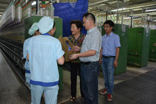 最近,气温节节攀升,连日来的高温酷暑牵动着集团公司领导的心。8月3日下午,集团公司党委书记、董事长沈健宏,党委副书记、工会主席张云,带领相关人员来到太阳集团西尔克公司、纺一车间、红鹿公司、织二车间以及正在紧张装车的数字化车间等高温点进行慰问,为坚守在高温一线的员工送上清凉。