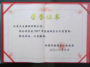 太阳集团摘得2017年度港闸区区长质量奖
