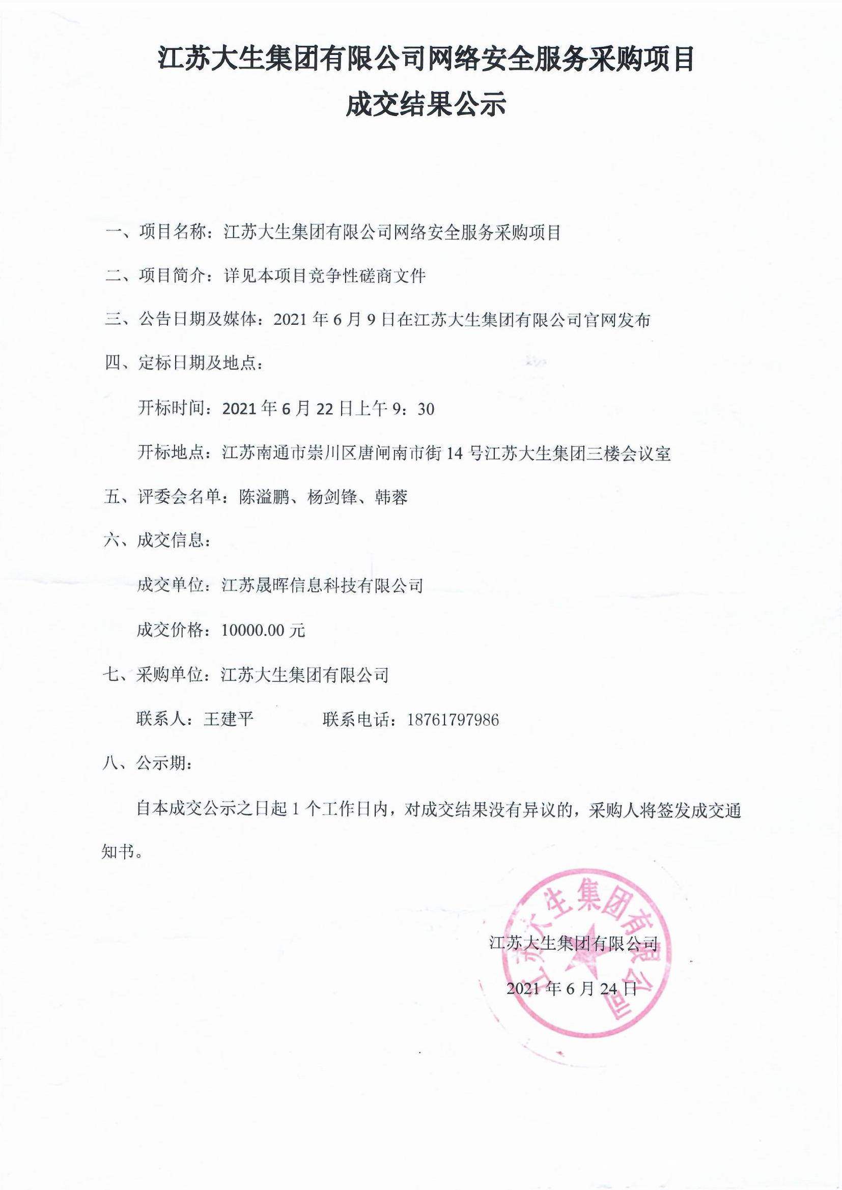太阳集团网络安全服务采购项目成交结果公示