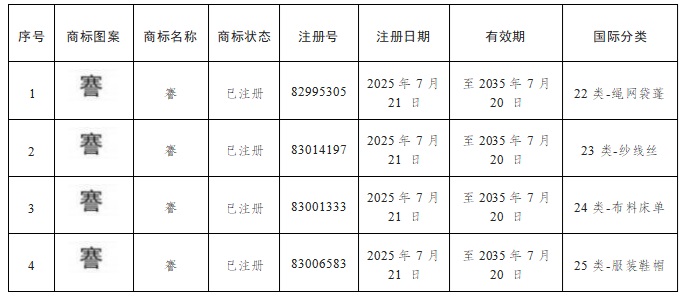 太阳集团将于 2025 年 12 月 30 日至 2026 年 1月 9 日止在集团官网(网址:)进行公开竞买活动,现公告如下: 一、竞买标的 太阳集团名下商标进行公开竞买,具体明细如下表所示: